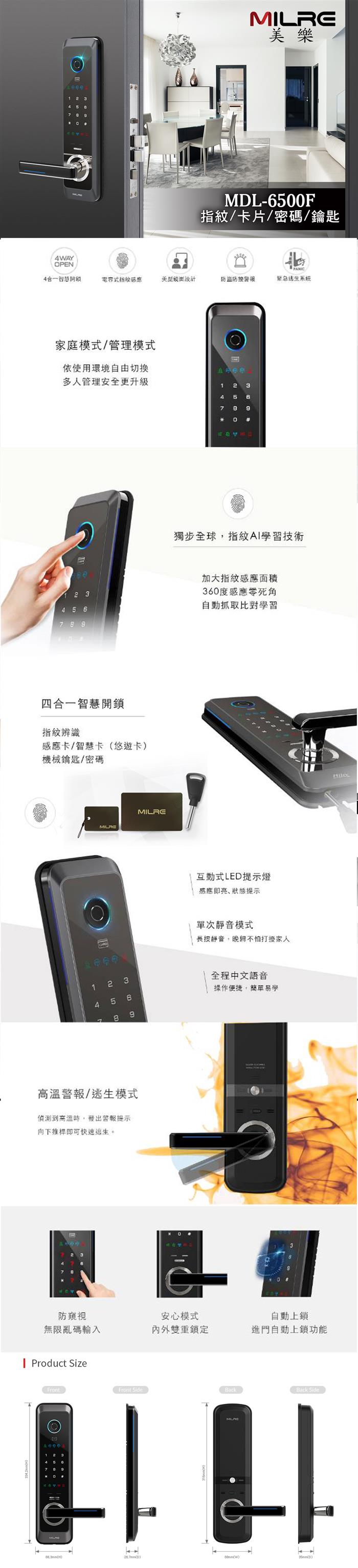 MDL-6500F 指紋 感應卡 密碼 鑰匙 電子鎖